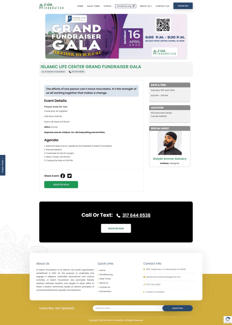 Masjid Solutions provided its technological expertise to support the Grand Fundraiser Gala organized by Al Salam Foundation. The team assisted in setting up and managing the event’s online platform, which raised significant funds for the foundation’s charitable activities. The event was a resounding success and exceeded the foundation’s fundraising goals.